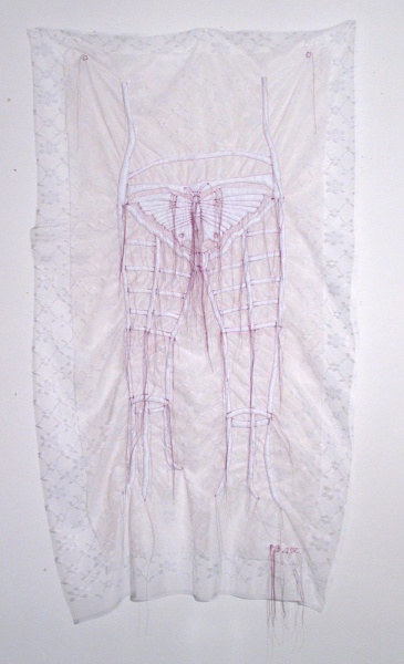 Leinen, Vorhangstoff, Watte, à ca. 75 x 130 cm, 2005
